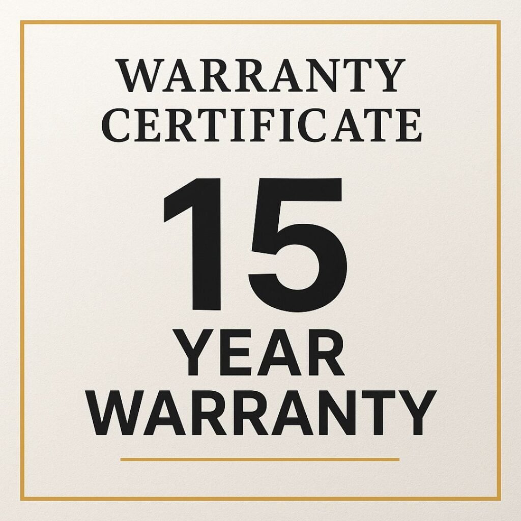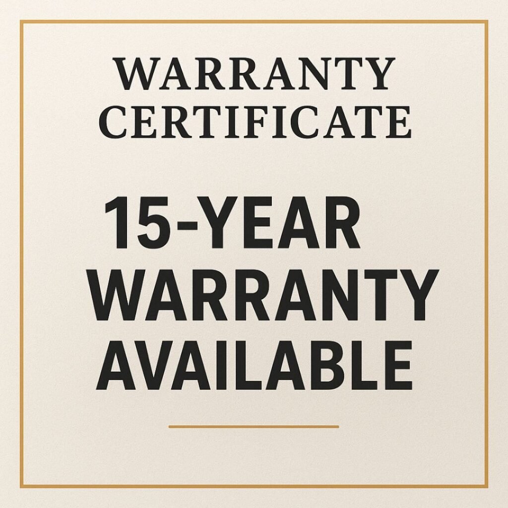 15-Year Written Warranty Certificate: We provide a written warranty certificate with every purchase, giving you peace of mind and long-term assurance.